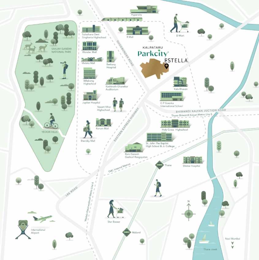 Located on Kolshet Road, Estella enjoys the advantages of a well-connected, premium micro-neighbourhood within Thane.